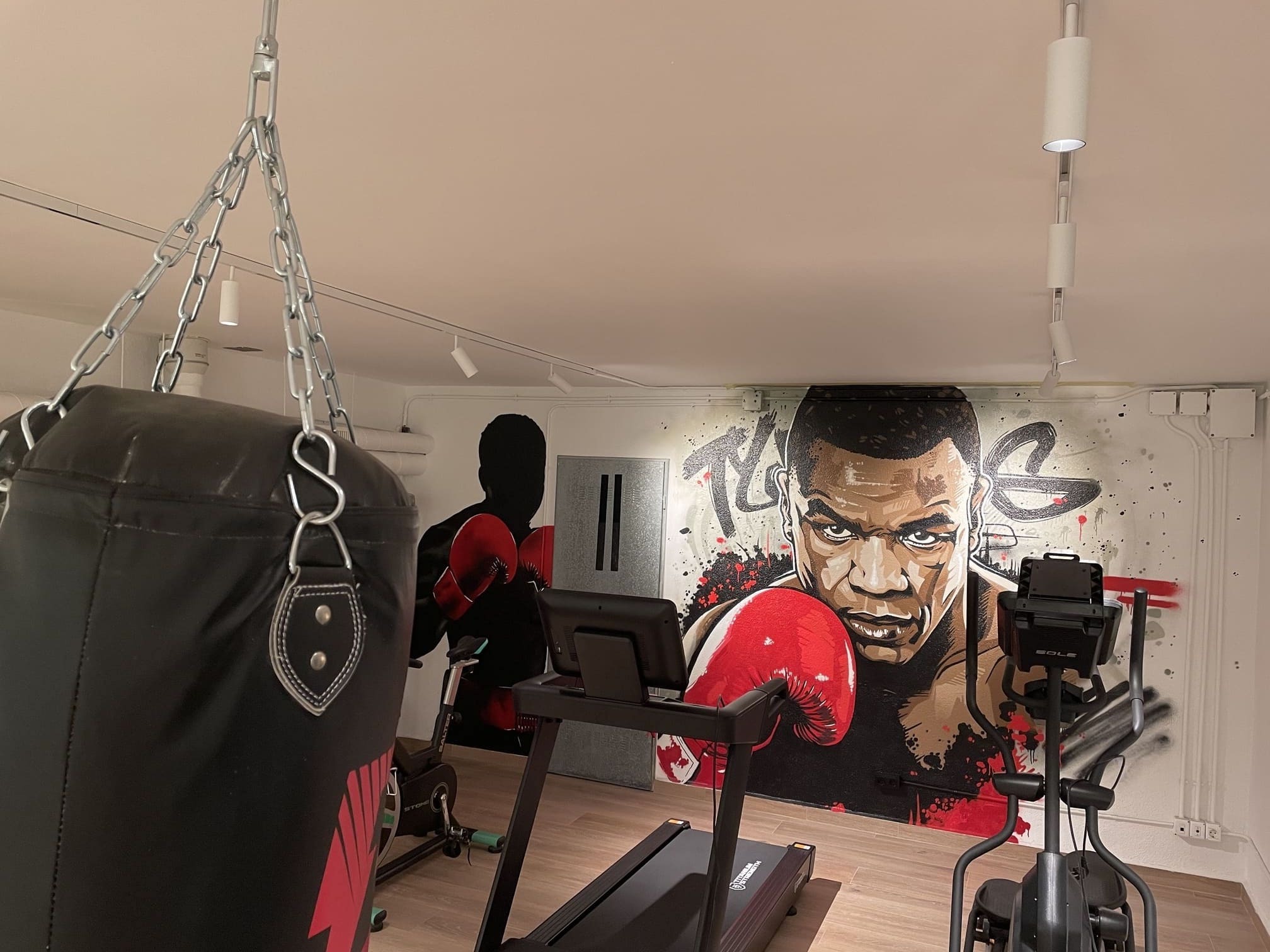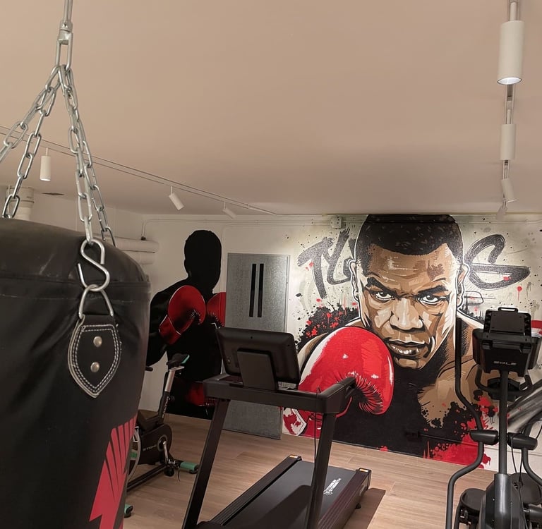 Decoración de gimnasios privados en villas de lujo: murales exclusivos que aportan motivación, estilo y personalidad.
